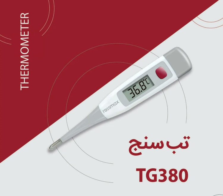 تبسنج «رزمکس» (Rossmax) مدل «TG380»، دماسنجی برای اندازهگیری دمای بدن، دارای سر منعطف و ضد آب است. سر تبسنج با قابلیت انعطاف بالایی که دارد، برای اندازهگیری دمای نقاط مختلف بدن مناسب است. از آن جایی که سر این تبسنج ضد آب است، میتوان آن را شست و با الکل ضدعفونی کرد. این تبسنج قابلیت اندازهگیری دما در محدوده 32 تا 42.9 درجهی سانتیگراد را دارد. دقت اندازهگیری تبسنج 0.1 درجه سانتیگراد است. دمای اندازهگیری شده با دو واحد سانتیگراد و فارنهایت روی صفحه، نمایش داده میشود. صفحهنمایش تبسنج از نوع دیجیتالی بوده که مصرف باتری پایینی دارد. روی صفحه علاوه بر دمای اندازهگیری شده، نشانگرهای دمای بیشتر یا کمتر از محدوده قابل اندازهگیری، نشانگر تعویض باتری و نشانگر خطا نشان داده میشوند. چنان چه دمای اندازهگیری شده از دمای طبیعی بدن یعنی 37.8 درجهی سانتیگراد فاصله داشته باشد، هشدار صوتی به صدا در میآید. این هشدار برای تب بالای 38 درجه و دمای زیر 37 درجه متفاوت است و با بوقهای متوالی یا ادامهدار مشخص میشود. انرژی تبسنج از یک عدد باتری دکمهای تأمین میشود که عمر آن برای 1500 بار استفاده، معادل دو بار اندازهگیری در روز در طول یک سال کفایت میکند. چنان چه پس از پایان اندازهگیری دما، تبسنج به حال خود رها شود، جهت جلوگیری از تخلیه ناخواسته باتری، پس از مدتی تبسنج به شکل خودکار خاموش میشود. هنگام ضعیف شدن باتری، نشانگر تعویض باتری روی صفحه نشان داده میشود. برای اینکه دقت تبسنج همواره در بهترین حالت باقی بماند، باید باتری ضعیف شده را فوراً تعویض کرد. به طور خلاصه تبسنج Rossmax TG380 دارای دقت اندازهگیری 0.1 درجهی سانتیگراد، محدوده اندازهگیری 32 تا 42.9، صفحهنمایش دیجیتال، هشدار صوتی و قابلیت خاموشی خودکار بوده و با سر منعطفی که دارد برای اندازهگیری دمای دهان، زیر بغل و مقعد مناسب است.