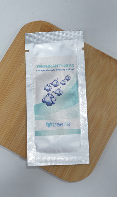 پودر طباگران نقره تریتا از سری محصولات زخم تریتا شامل گرانولهای بیوپلیمری ۱ بر پایه پروتئین کلاژن بوده و از ذرات کریستال نقره جهت درمان عفونت استفادهشده است.