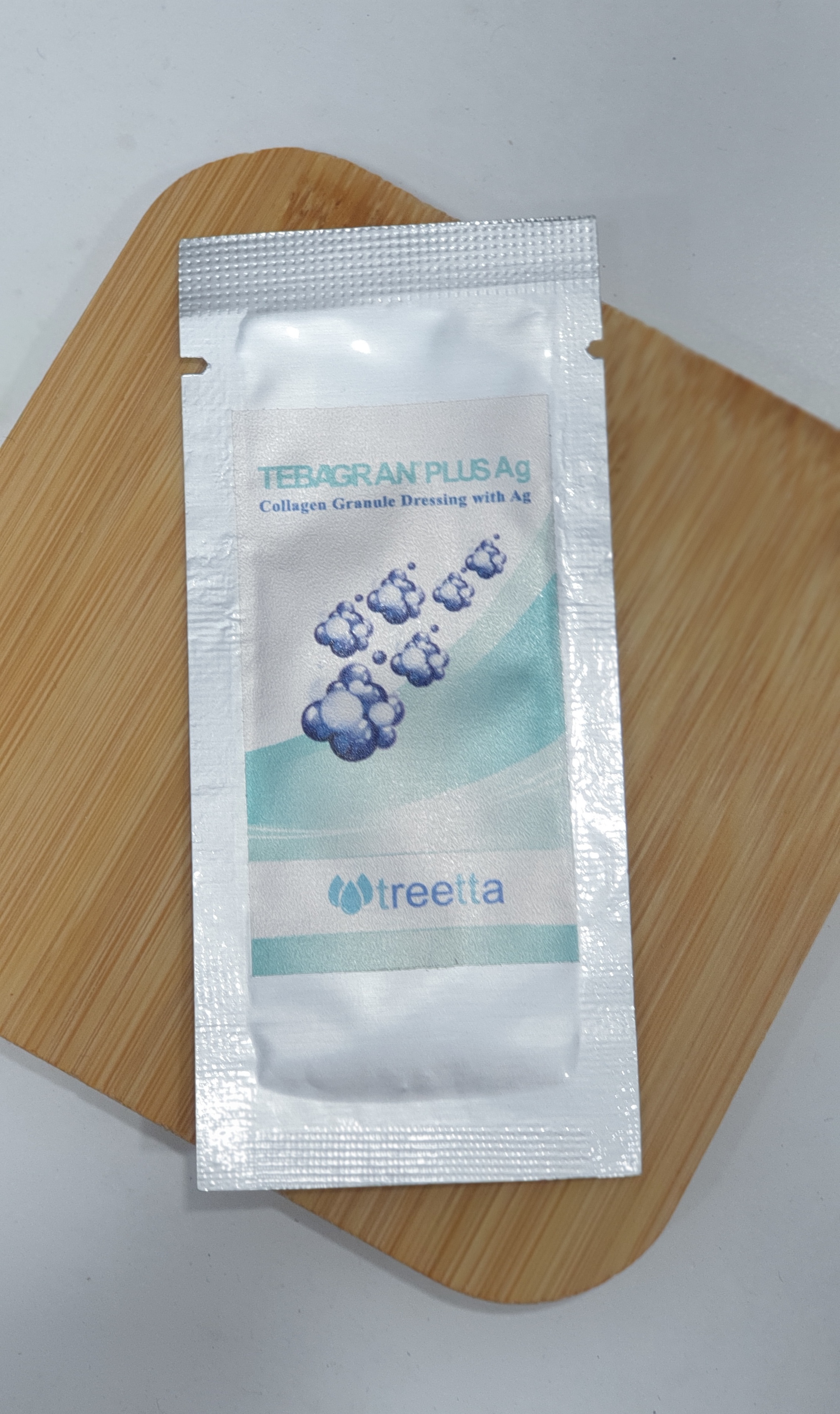 پودر طباگران نقره تریتا از سری محصولات زخم تریتا شامل گرانولهای بیوپلیمری ۱ بر پایه پروتئین کلاژن بوده و از ذرات کریستال نقره جهت درمان عفونت استفادهشده است.